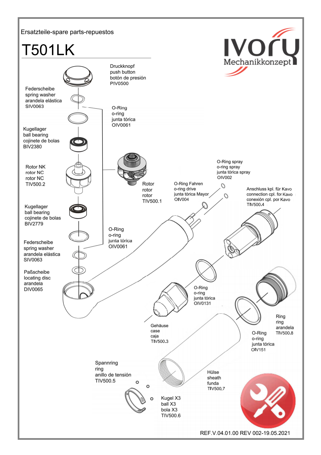 Ivory Turbine Kavo T501LK spare parts